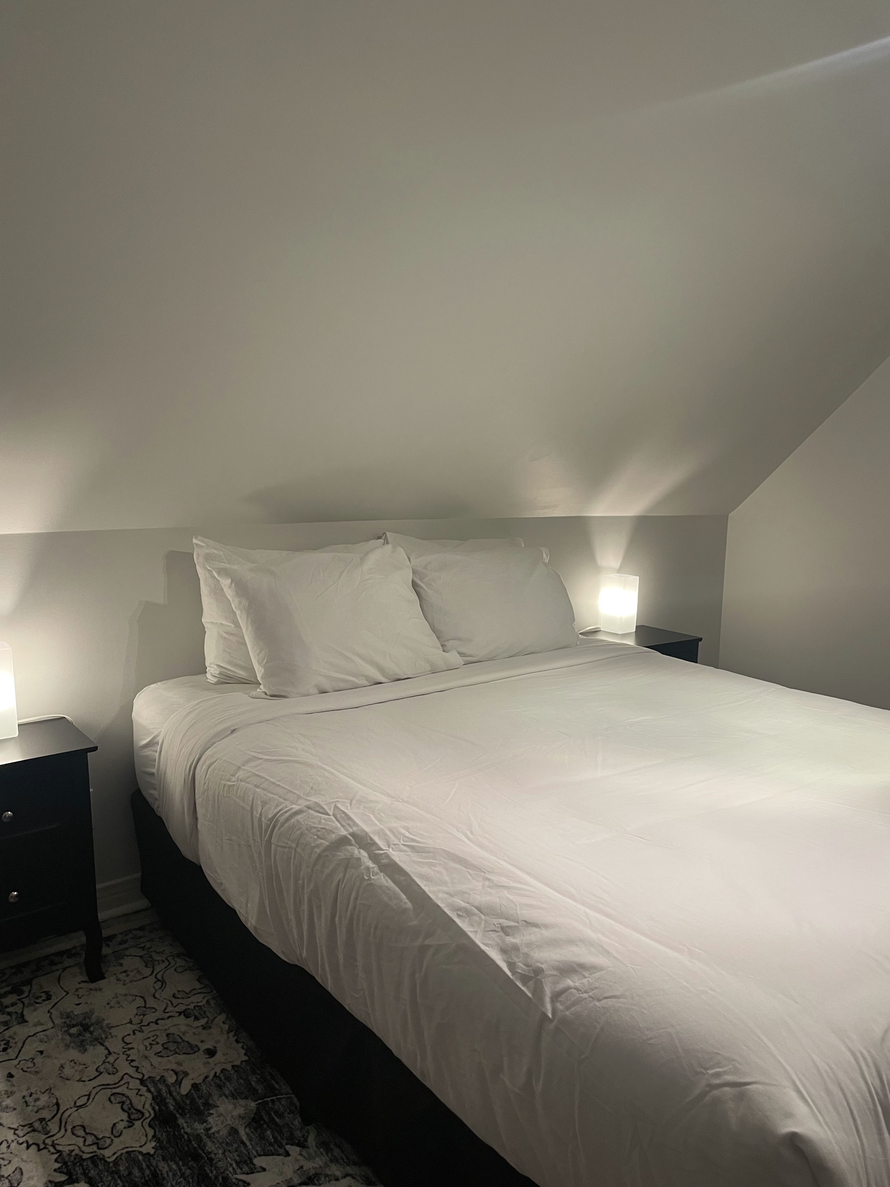 Your guest room features: *Queen bed with white linens *Workspace with fast Wi-Fi *Shared bathroom with walk-in shower and separate powder room *Toiletries and fresh towels